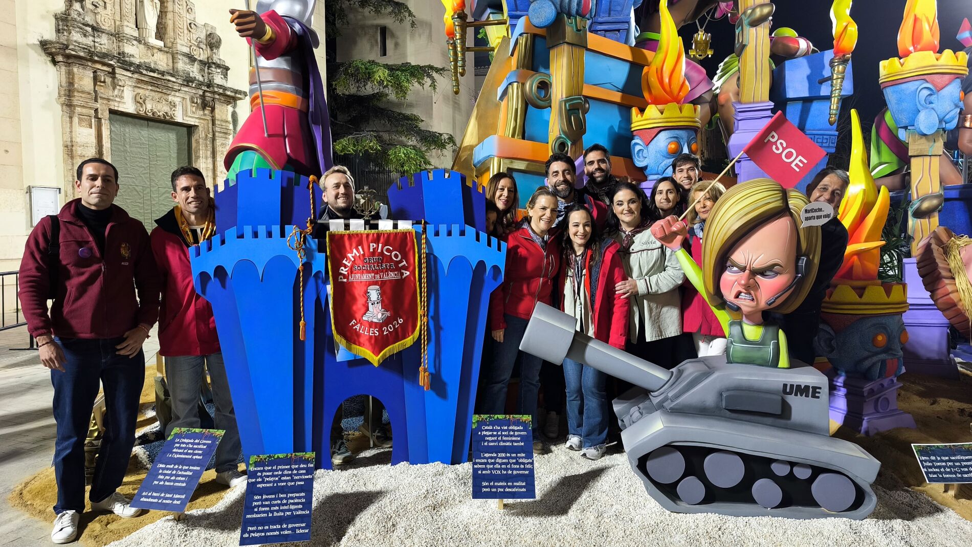 El PSOE da su premio a las Fallas a un monumento de Pilar Bernabé subida a un tanque de la UME