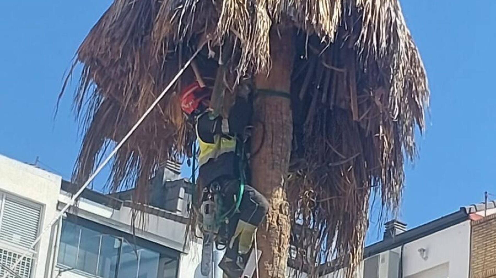 Revierten la parada cardíaca a un operario atrapado durante la poda de una palmera