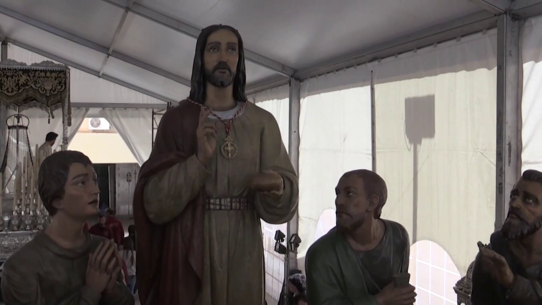 El conjunto de imágenes alrededor de la mesa pesa unos 3.500 kilos y está portado por 220 costaleros...