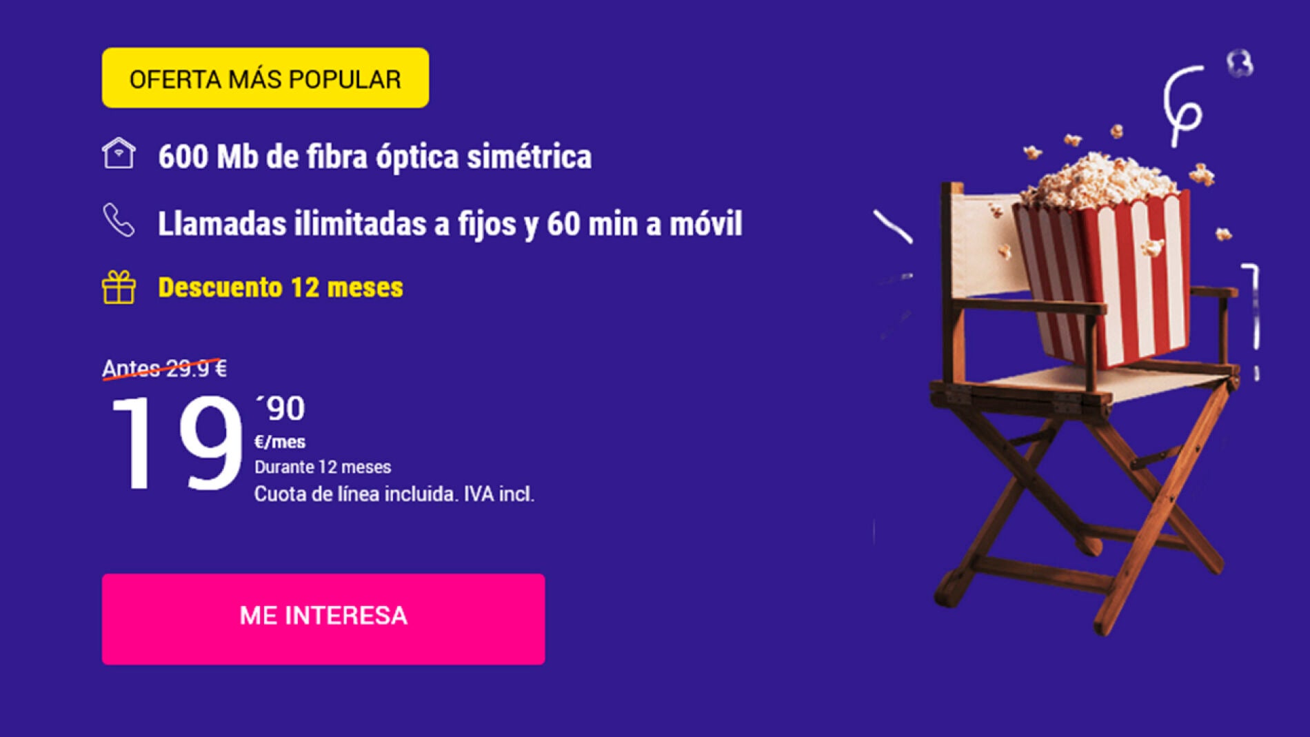 La tarifa tiene un descuento promocional de 10 euros al mes durante los primeros 12 meses. En total, ahorrarás 120 euros...