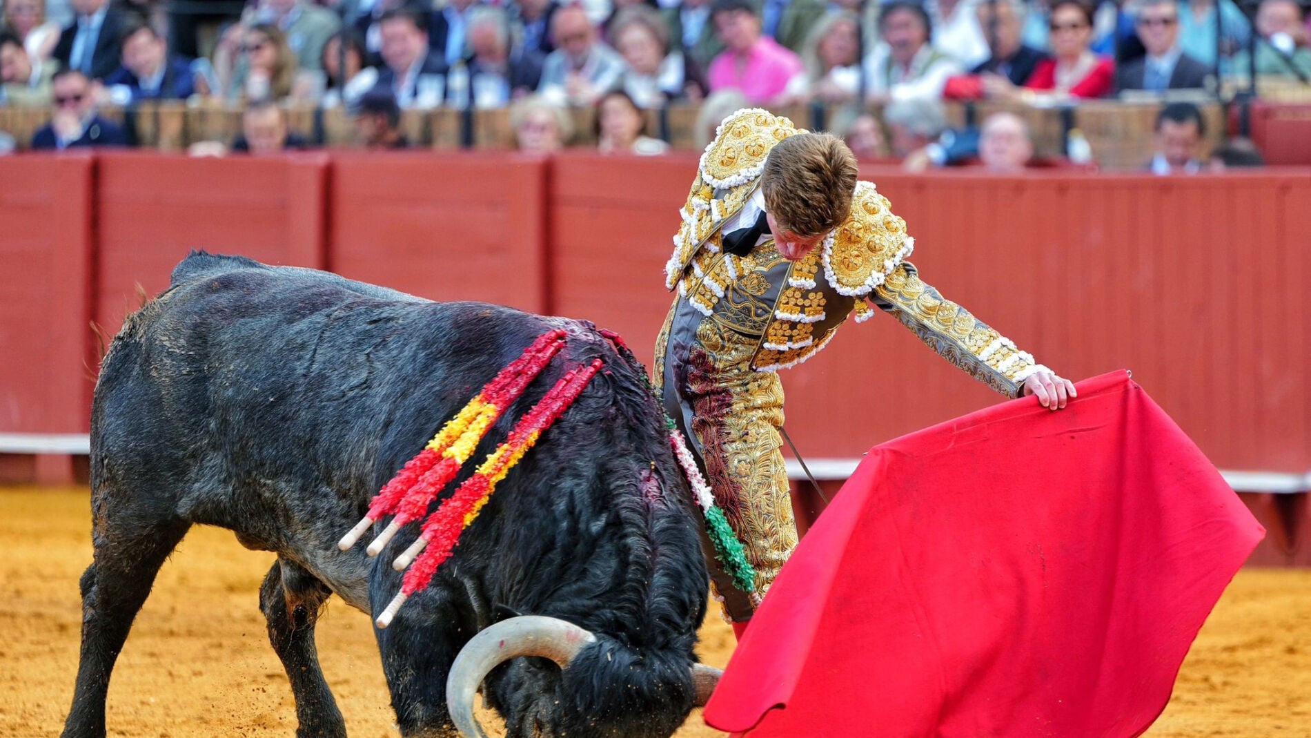 El torero da dos vueltas al ruedo tras fallar con los aceros en la Feria de Abril de Sevilla...