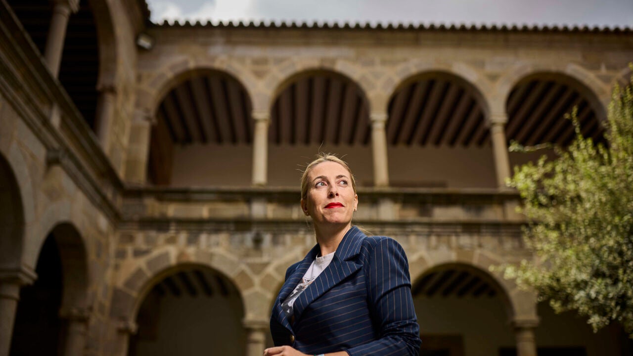 La candidata del PP se somete a la sesión de investidura en el Parlamento extremeño...