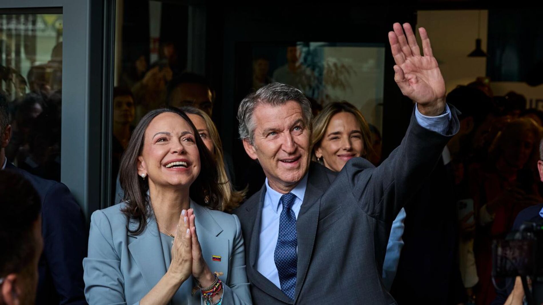Feijóo recibe a María Corina Machado por la puerta grande de Génova: "El sitio de España es con la libertad"