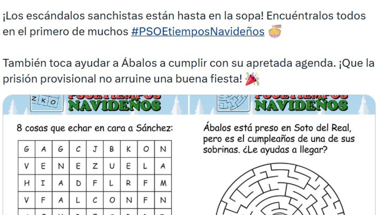 El PP se mofa del PSOE con unos pasatiempos: "Ayuda a Ábalos a llegar al cumpleaños de una de sus sobrinas"
