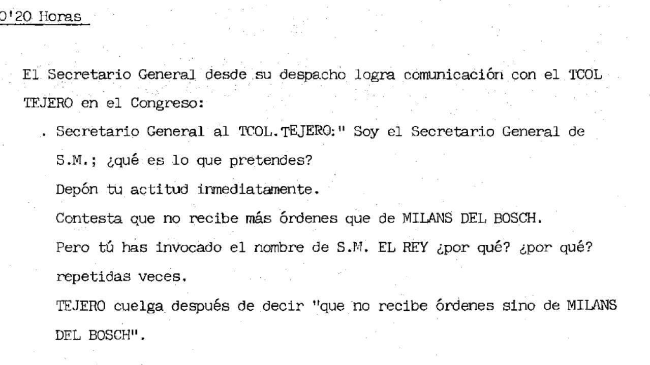 Zarzuela ordenó a Tejero parar el 23-F: "Depón tu actitud"