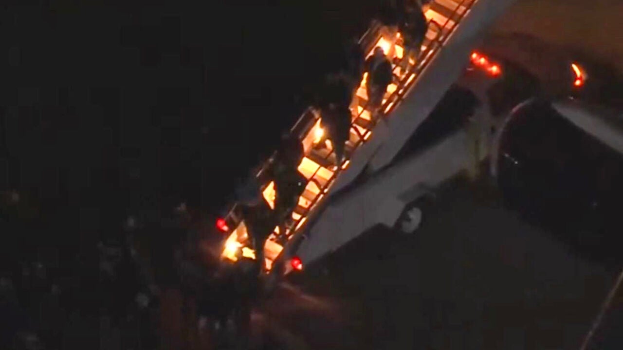 Maduro baja del avión en Nueva York esposado y custodiado por el FBI y la DEA