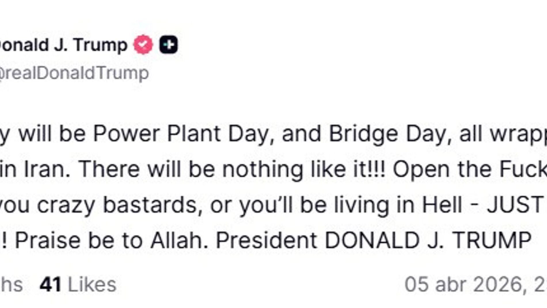 Donald Trump, a Irán: "Abrid el puto estrecho, locos cabrones, o vais a vivir en el infierno"