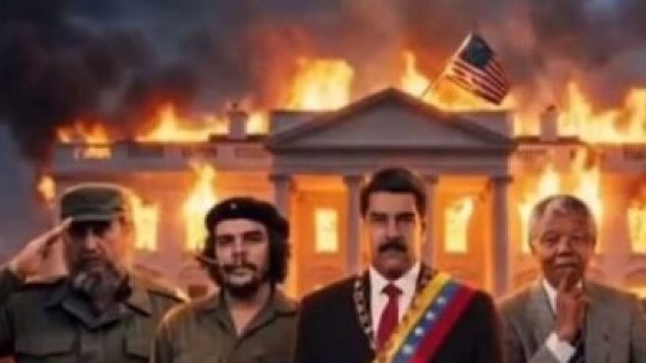 Publica un vídeo de la sede presidencial en llamas con las fotografías en primer plano del dictador venezolano, Nasser, Castro, el Ché y Mandela...