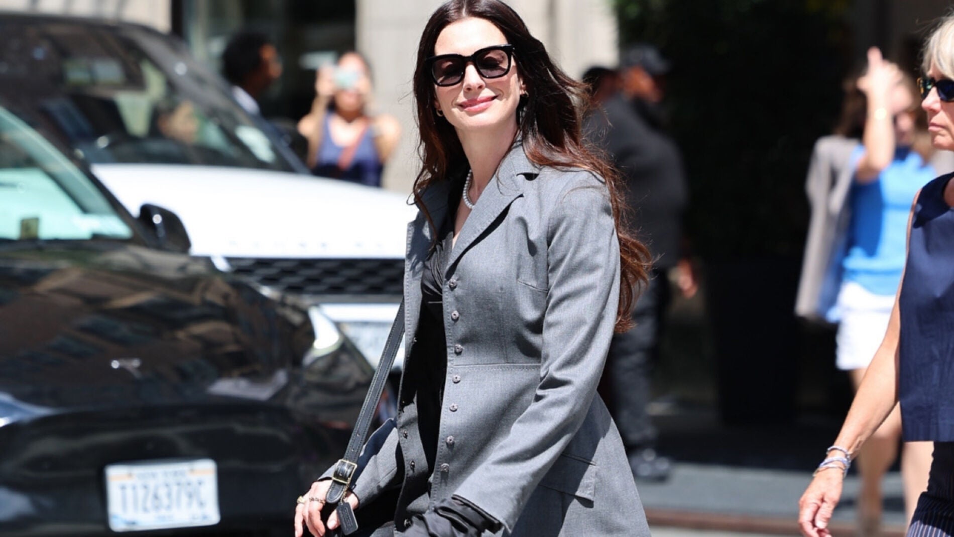 Del traje con chaleco al estampado de serpiente: los looks que Anne Hathaway nos ha adelantado de 'El Diablo viste de Prada 2'