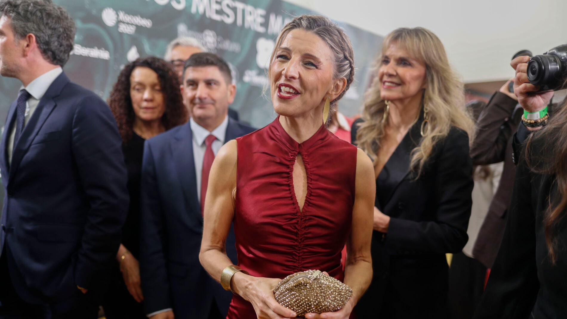 Yolanda Díaz recupera este vestido satinado y rebajado en su aparición inesperada en los Premios Mestre Mateo 2026 en Lugo
