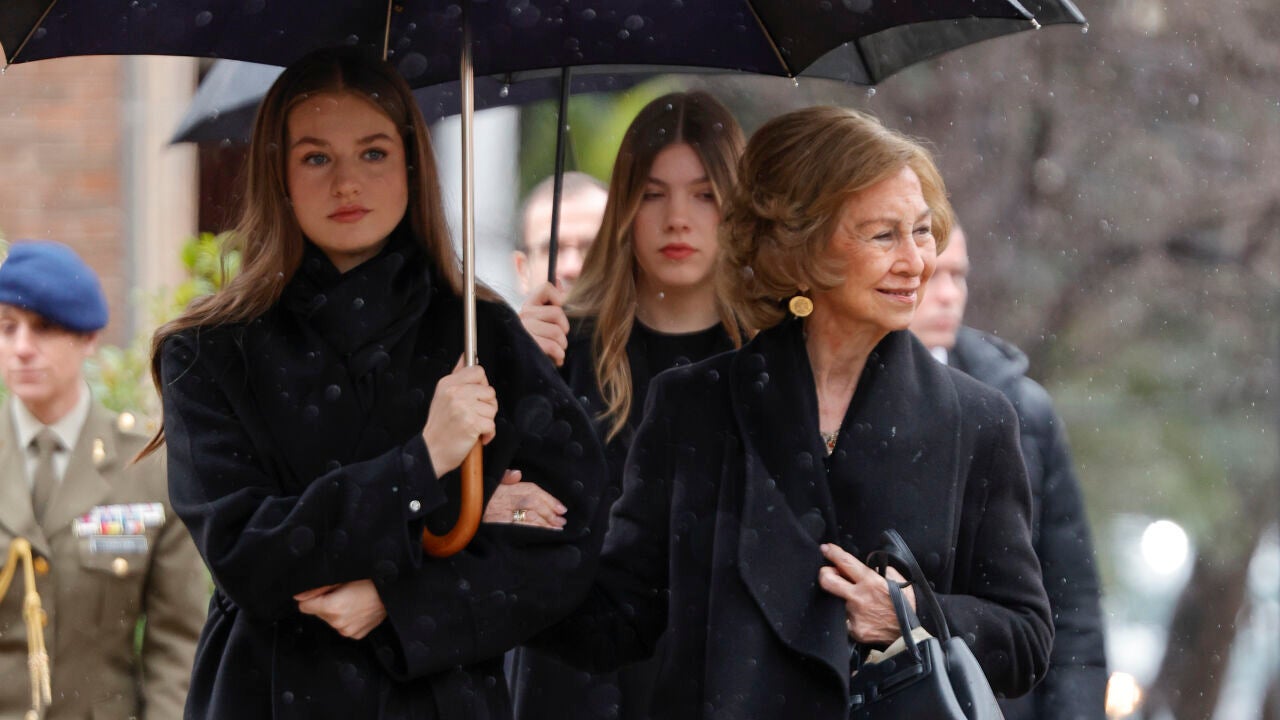 Tanto la heredera al trono como la Infanta han regresado a Madrid para rendir homenaje a la hermana de su abuela Sofía con atuendos de absoluto respeto y solemnidad...