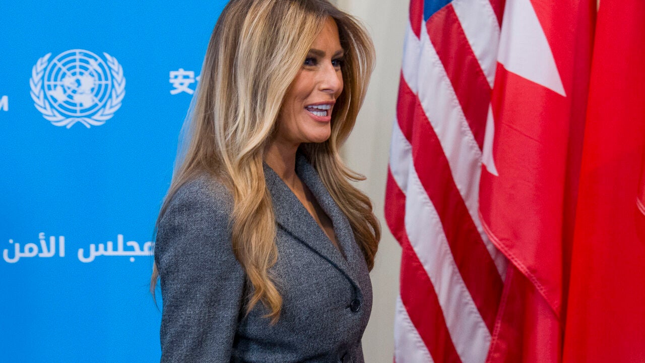 Melania Trump hace historia en la ONU con el traje gris más poderoso de Dior y sus stilettos infinitos