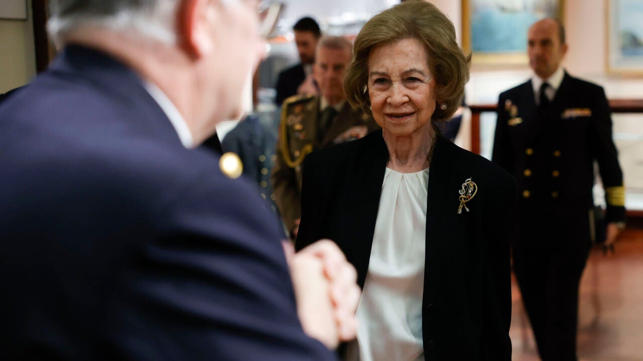La Reina emérita visita la exposición “La bandera que vino de la mar” con un traje negro combinado con blusa blanca y un broche dorado, un estilismo sobrio que introduce un matiz luminoso en su vestuario tras la muerte de su hermana, Irene de Grecia...