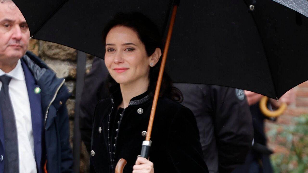La sobriedad formal del abrigo reciclado de Ayuso para asistir a la capilla ardiente de Irene de Grecia en Madrid