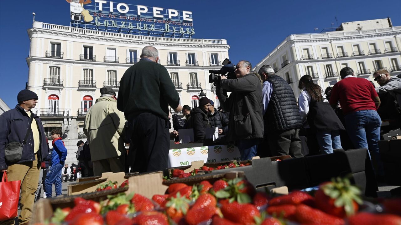Los agricultores reparten hoy miles de tarrinas de fresas de Huelva en la Puerta del Sol