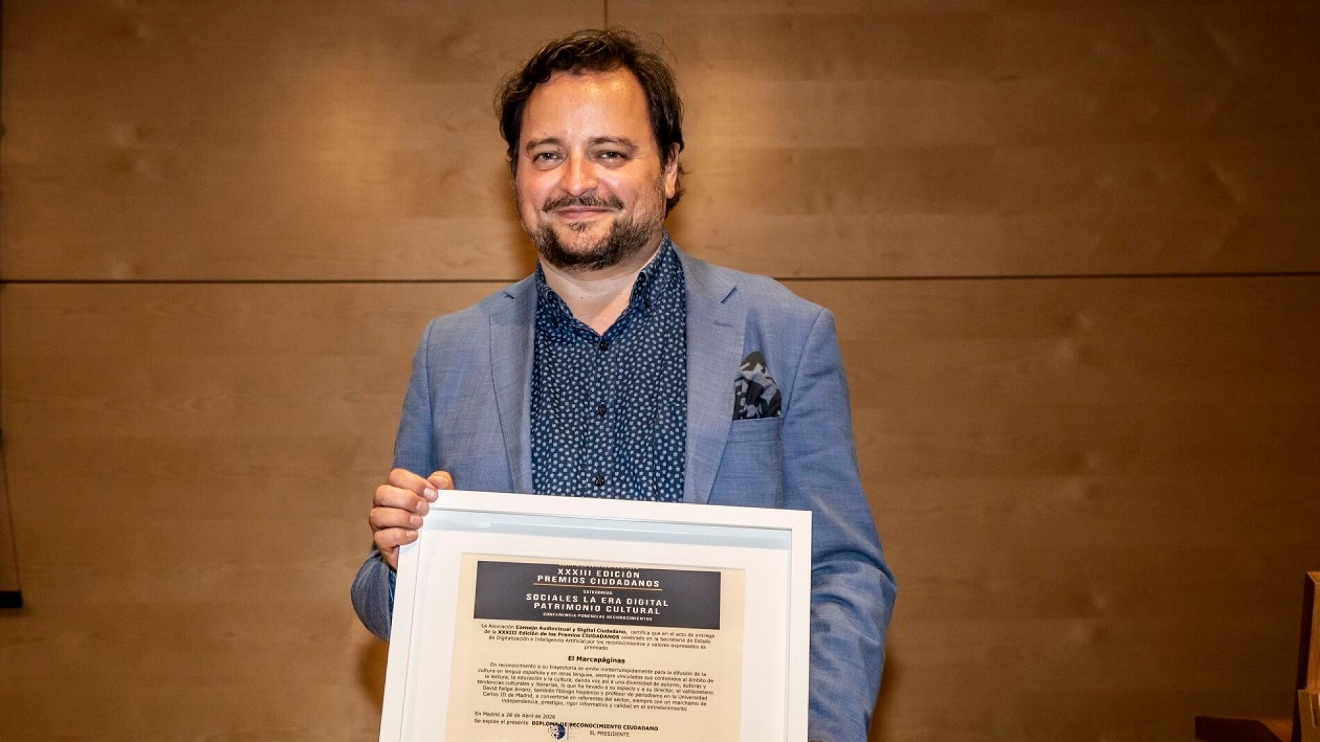 David Felipe Arranz, Premio Ciudadanos por su programa literario El Marcapáginas
