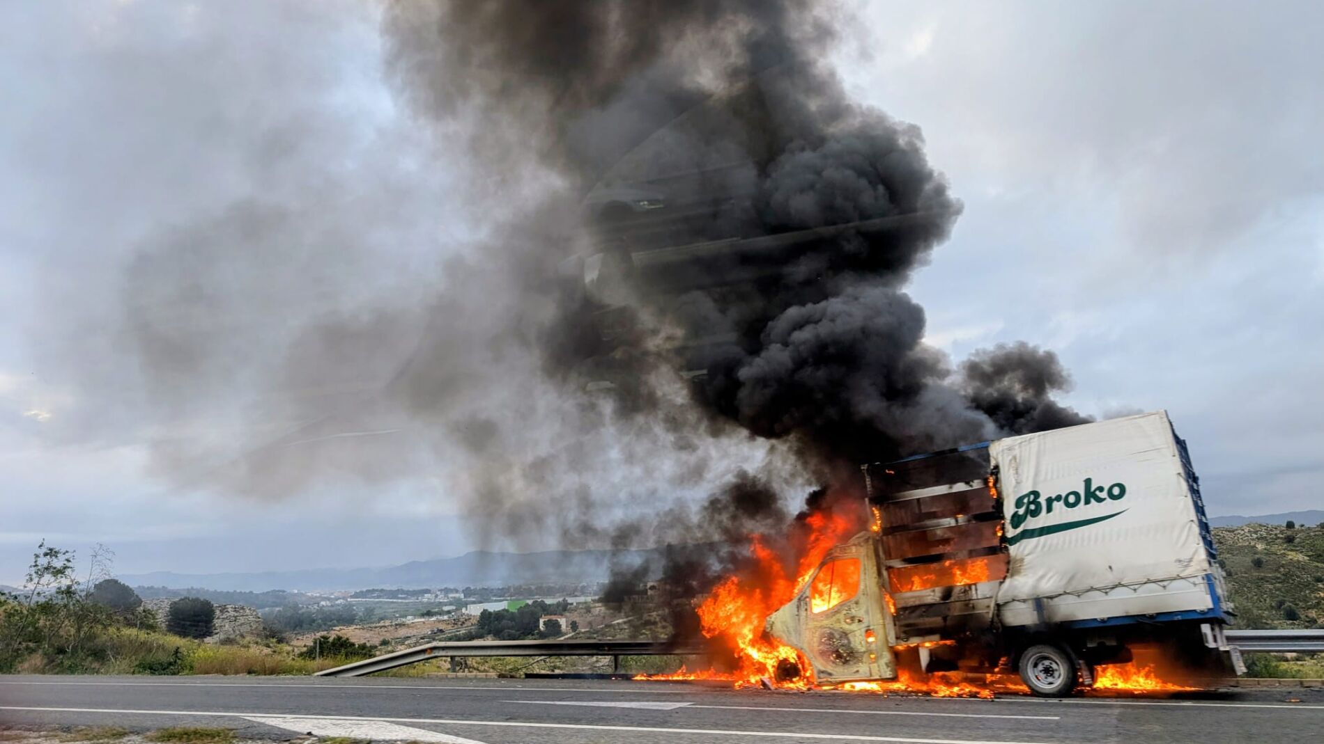Arde un camión en la A-7 entre Las Torres de Cotillas y Javalí Nuevo