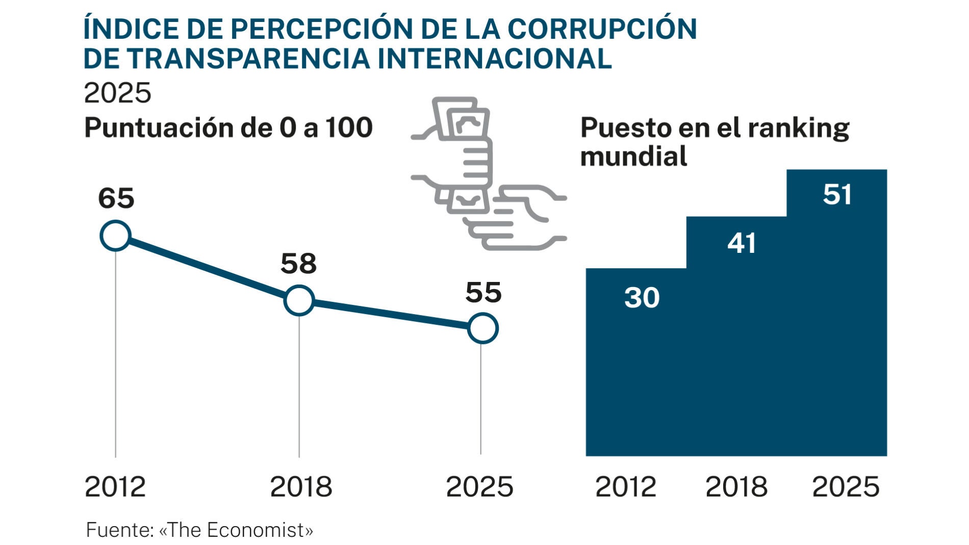 España registró en 2025 su peor nota en el Índice de Percepción de Corrupción