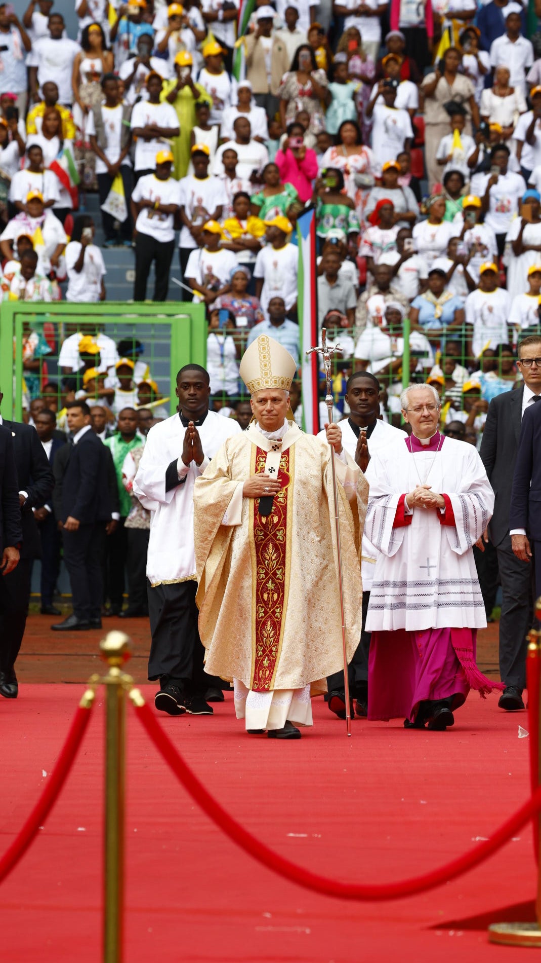 Una misa ante 30.000 personas cierra la gira que encumbra su autoridad ética en favor de la paz tras los ataques de Trump...