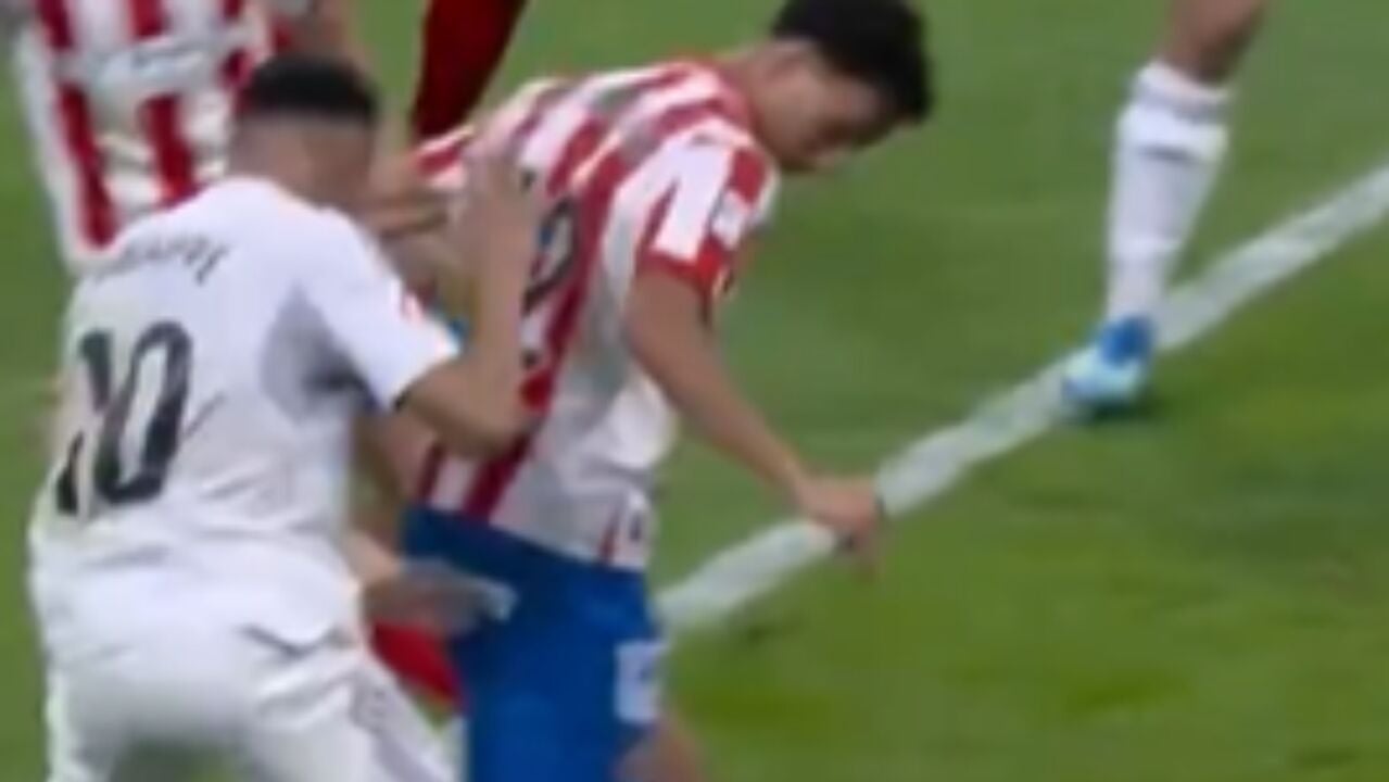 En el minuto 88, el francés se fue al suelo dentro del área quejándose de un 'codazo' del defensor gironí. Ni el colegiado del encuentro ni el VAR lo consideraron como penalti....