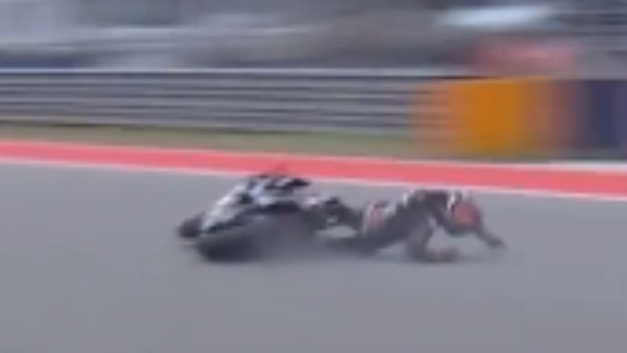 El madrileño dejó una imagen muy llamativa. Mientras hacía el 'caballito' en plena vuelta de honor, se fue al suelo a gran velocidad. Por fortuna, salió ileso. La soberbia última vuelta de Jorge Martín para arrebatarle la victoria a Bagnaia en la 'sprint' de Austin...