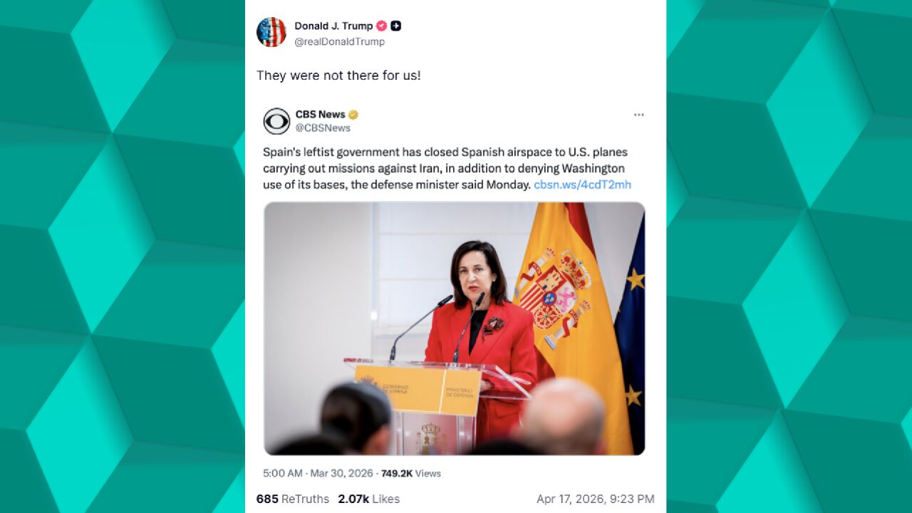 Trump vuelve a la carga contra España y critica el cierre del espacio aéreo de marzo: "No estuvieron ahí para nosotros"