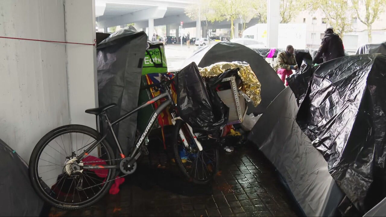 Debajo de un puente en plena alerta por lluvias: así pasan el día los migrantes desalojados en Badalona