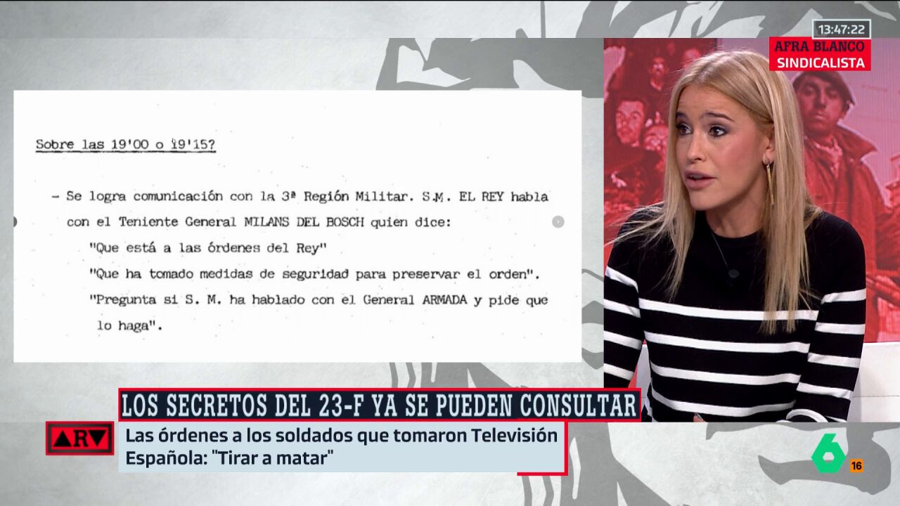Afra Blanco, sobre el 23F: "El emérito estuvo calentando a las tropas durante meses contra Suárez"