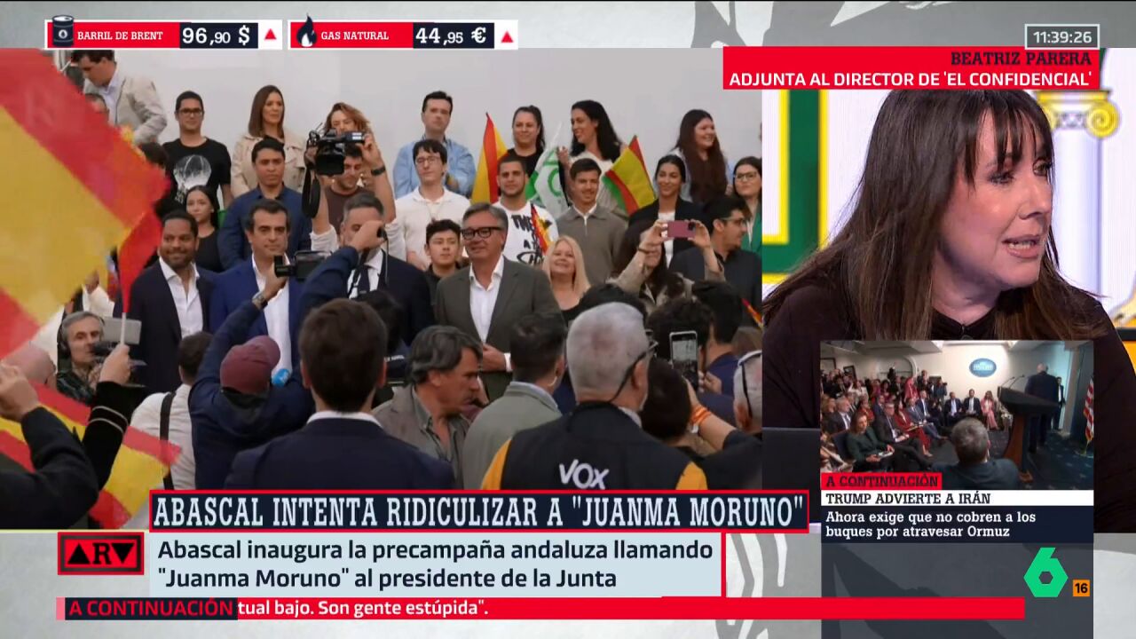 Beatriz Parera, tras el polémico comentario de Abascal sobre Juanma Moreno: "Me preocupa que la realidad siga superando a Torrente"