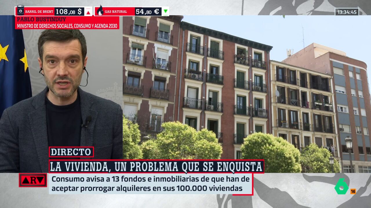 Los detalles El ministro de Consumo, Pablo Bustinduy, explica en Al Rojo Vivo, que su ministerio ha enviado este mismo lunes una carta a 13 inmobiliarias y fondos de inversión para informarles que deben prorrogar los contratos de sus inquilinos, que así lo soliciten....