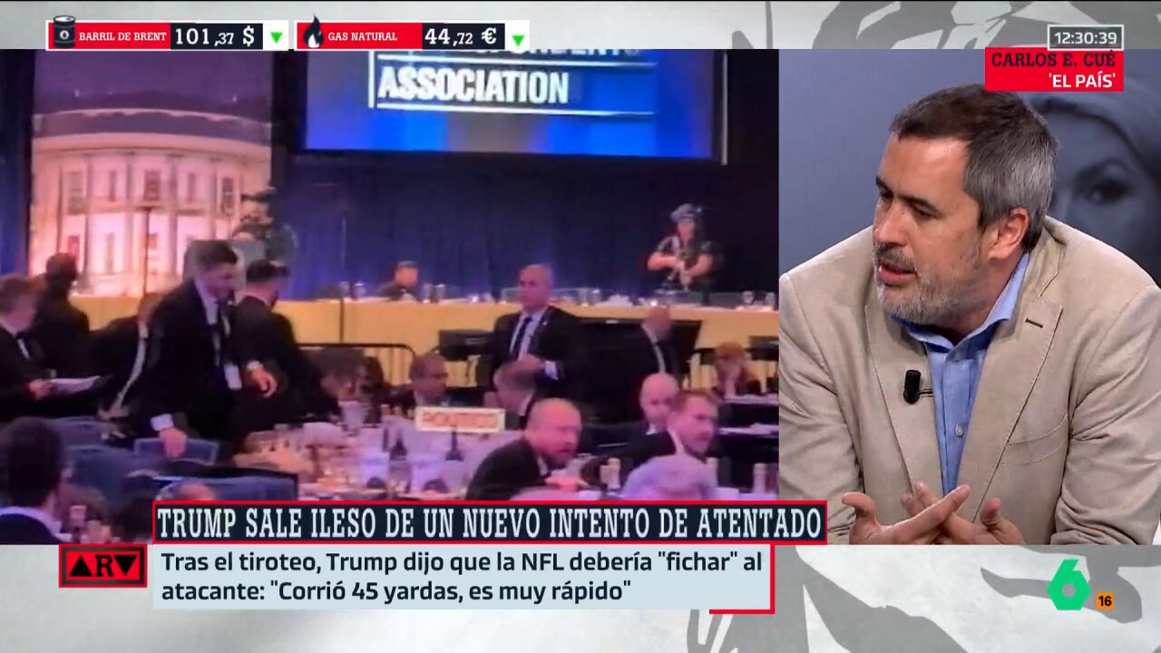 El periodista de 'El País' ha reaccionado en Al Rojo Vivo a las bromas de Trump tras el intento de atentado: "Es alucinante". Además, ha aprovechado el episodio para reflexionar sobre la situación política y social en Estados Unidos....