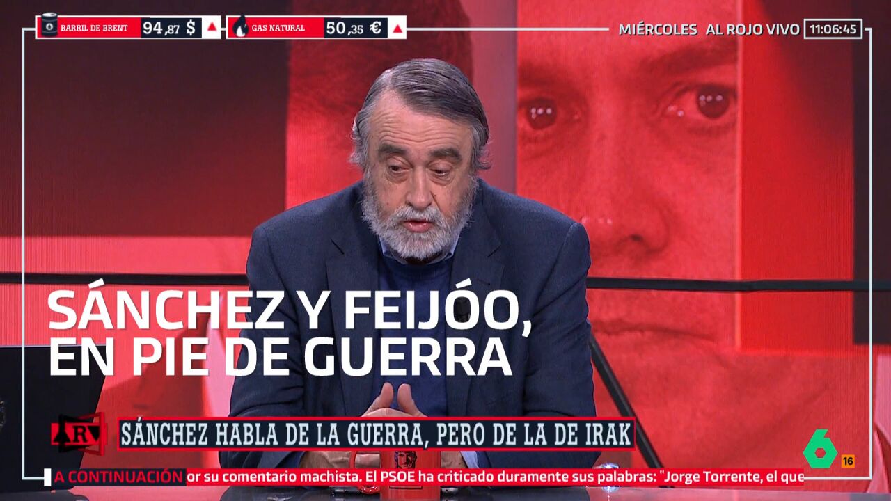 En Al Rojo Vivo, el periodista respalda el discurso del presidente Pedro Sánchez en el Congreso, donde reafirmó su "no a la guerra", aunque advierte: "El único reparo que formulo es que ha intentado aprovechar esto para desgastar al PP, para deslegitimar a Feijóo, y creo que eso es un error"....