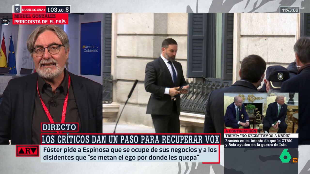 Miguel González, de 'El País', uno de los periodistas que más sabe del 'mundo Vox', analiza en Al Rojo Vivo, con Antonio García Ferreras, toda la guerra interna que tiene ahora mismo el partido de ultraderecha, donde a su líder le crecen los problemas....