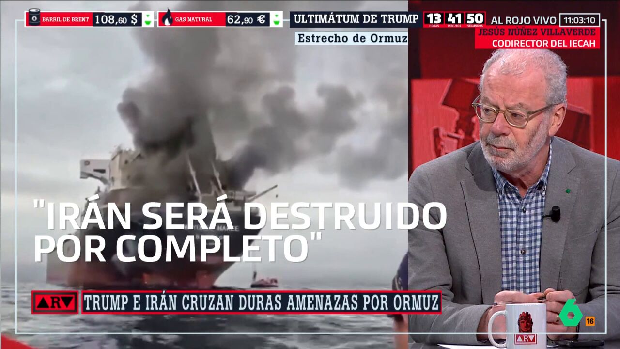 En Al Rojo Vivo, Jesús Núñez Villaverde advierte que el ultimátum de Donald Trump a Irán "no conduce a la victoria" y que, aunque no puede ganar la guerra, "sí puede responder a cada ataque"....