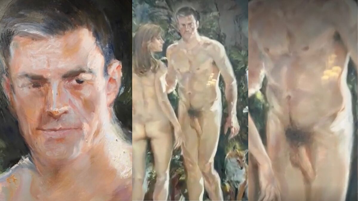El retrato, titulado Adán y Eva, es obra de un pintor italiano y muestra al jefe del Ejecutivo y a su mujer completamente desnudos....