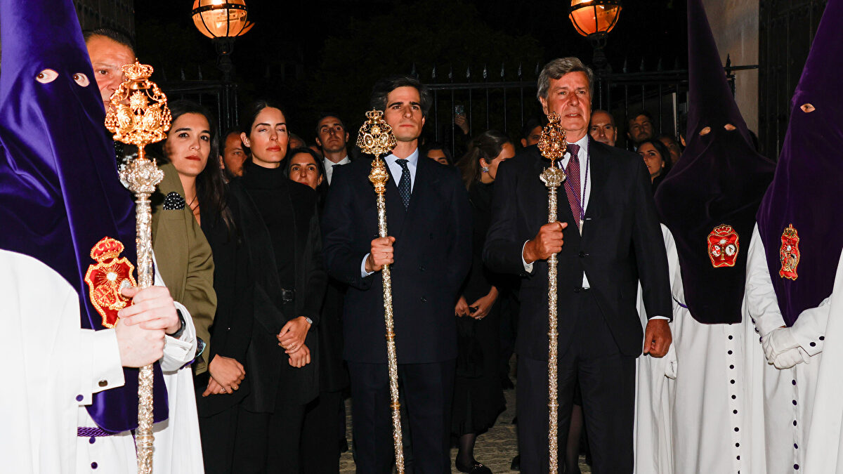 Los duques de Arjona y de Huéscar rinden tributo en Las Dueñas durante La Madrugá sevillana ante el paso de la Hermandad de los Gitanos....