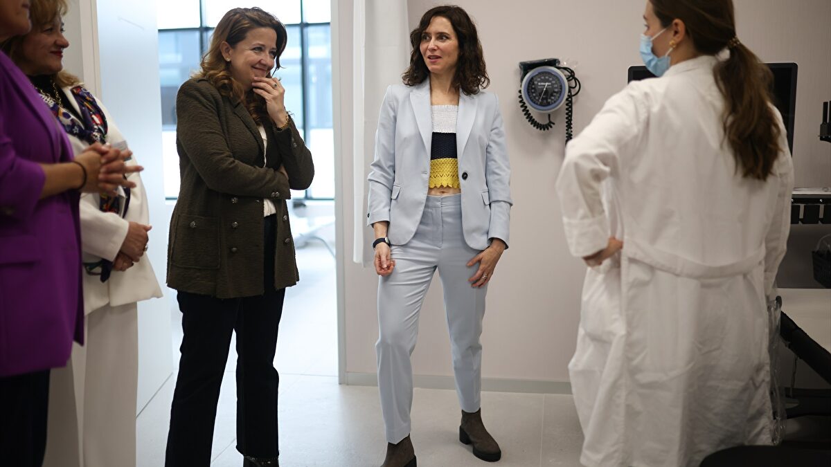 La presidenta madrileña reapareció tras la Semana Santa con un conjunto de chaqueta y pantalón en azul bebé....