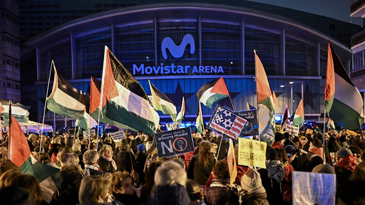 Gritos contra Israel y contra Ayuso en los prolegómenos del Real Madrid-Maccabi en el Palacio, donde se volvió a jugar sin público cinco años después....