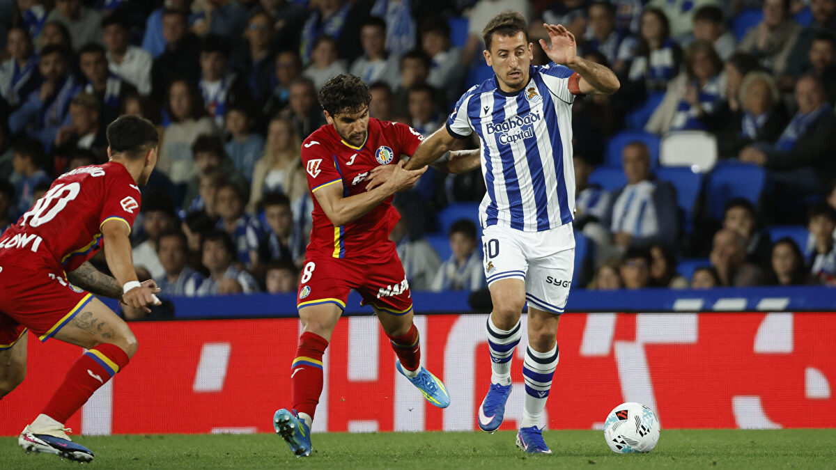 El delantero donostiarra acudió al vestuario azulón para hablar con el jugador del Getafe que estalló tras el encuentro en Anoeta....