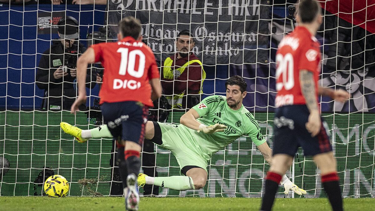 Quintero González justificó ante Courtois y Carvajal el penalti de El Sadar por llegar tarde. El equipo de Arbeloa cede el primer puesto al Barça....
