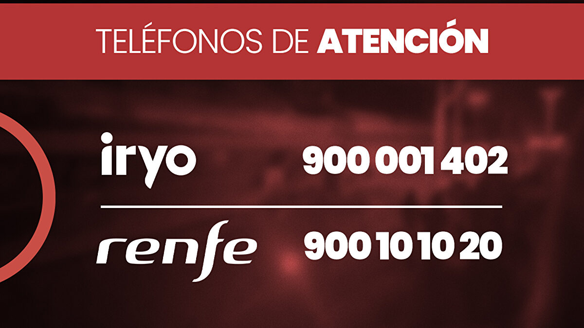 Hay dos teléfonos que se están facilitando para familiares de las víctimas del accidente. Son estos: Iryo (900 001 402) y Renfe (900 10 10 20)....
