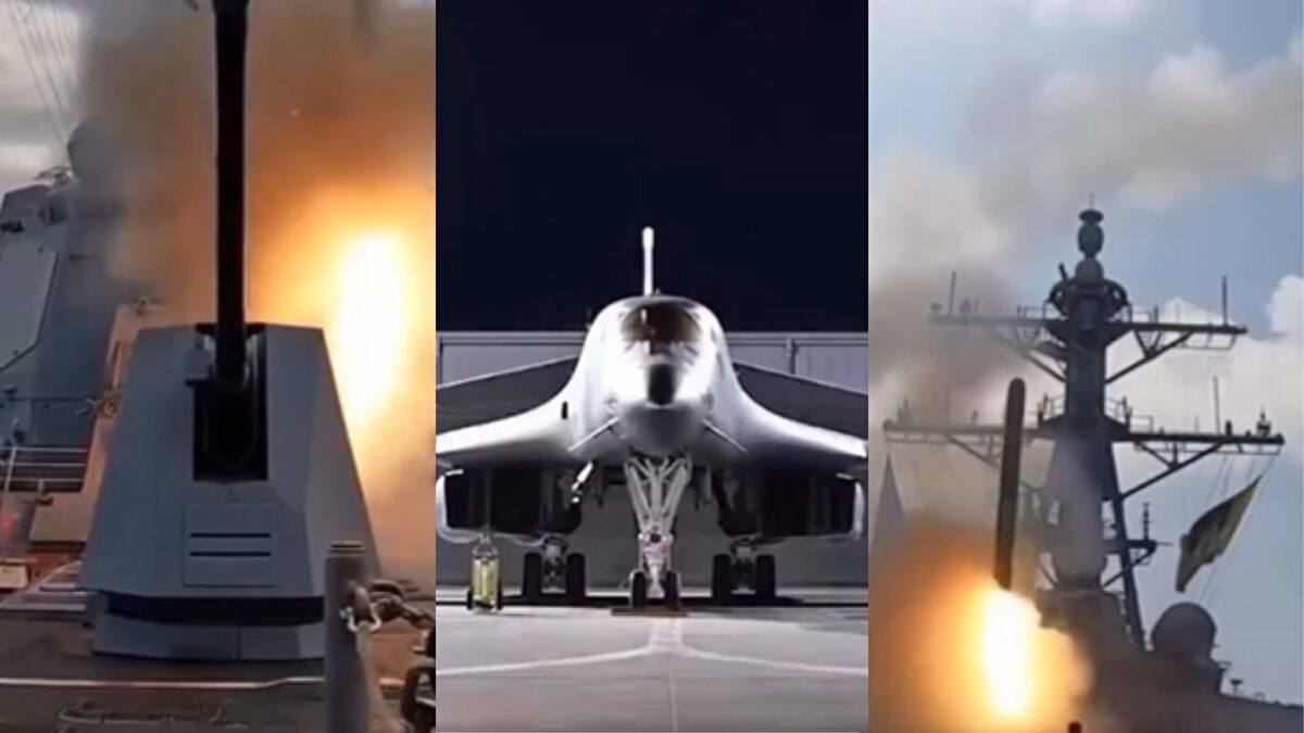 Un vídeo oficial de 39 segundos muestra el despegue de cazas furtivos B-21 y lanzamientos de misiles de largo alcance en el Golfo Pérsico....