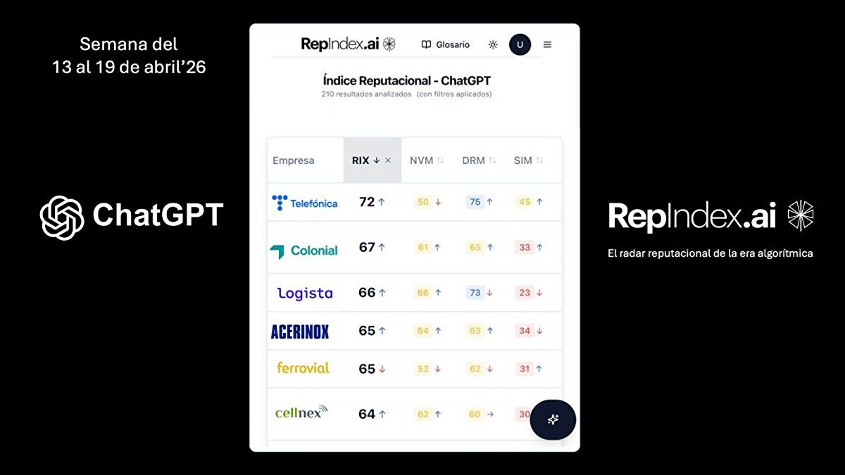 Telefónica, Colonial y Logista, mejor reputación algorítmica del IBEX-35, según ChatGPT en REPINDEX.AI