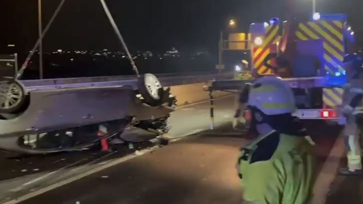 Vuelca un coche en la M-40 y el hallazgo de la policía es de película: dinero, gas de la risa y un pico para butrones