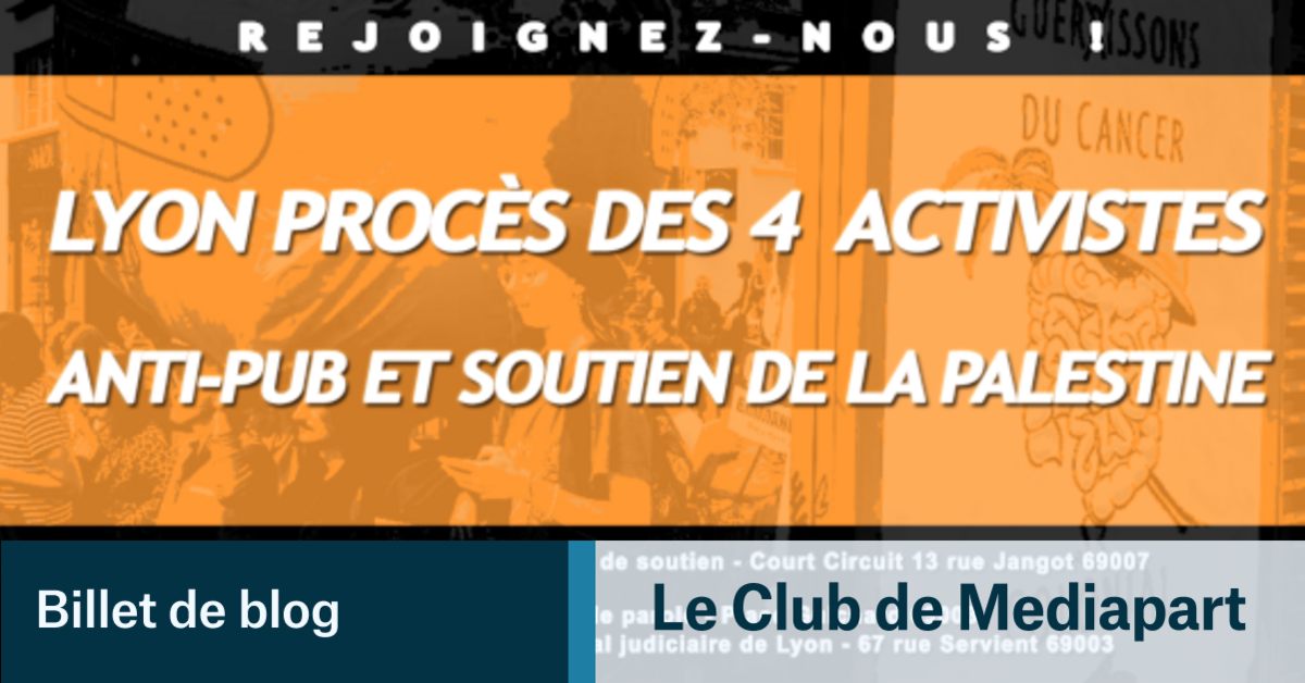 4 militant·es de Résistance à l’Agression Publicitaire Lyon et engagé·es contre pour la lutte de libération palestinienne sont poursuivi·es suite à une action de détournement publicitaire effectuée à Lyon le samedi 27 septembre 2025. Après plus de 40h de garde à vue, iels sont convoqué·es au Tribuna...