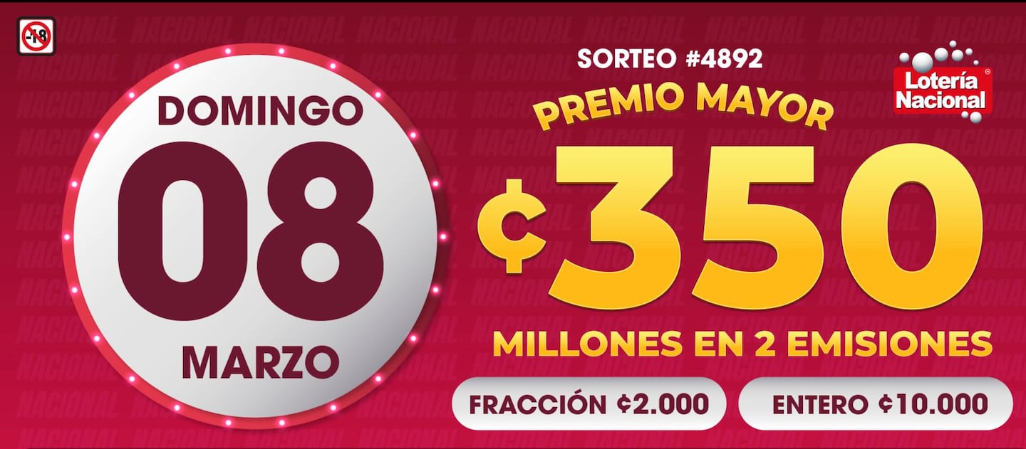 Premio mayor del sorteo N.º 4892 entrega ¢175 millones por emisión este 8 de marzo...