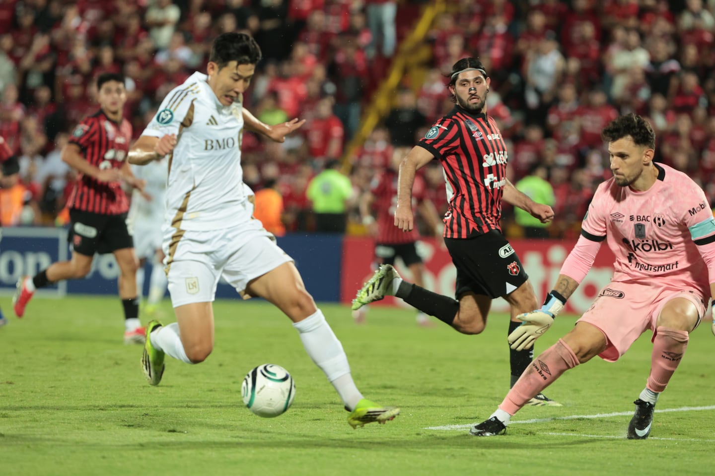 Una falta fuerte enojó a Son Heung-min en el partido entre Liga Deportiva Alajuelense y LAFC, en la Copa de Campeones de Concacaf...