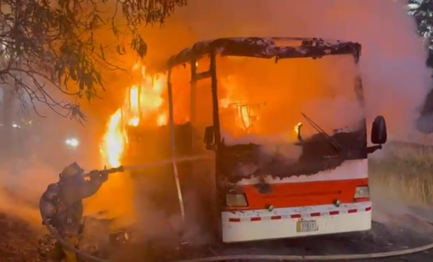 Bus arde en llamas en La Garita de Alajuela
