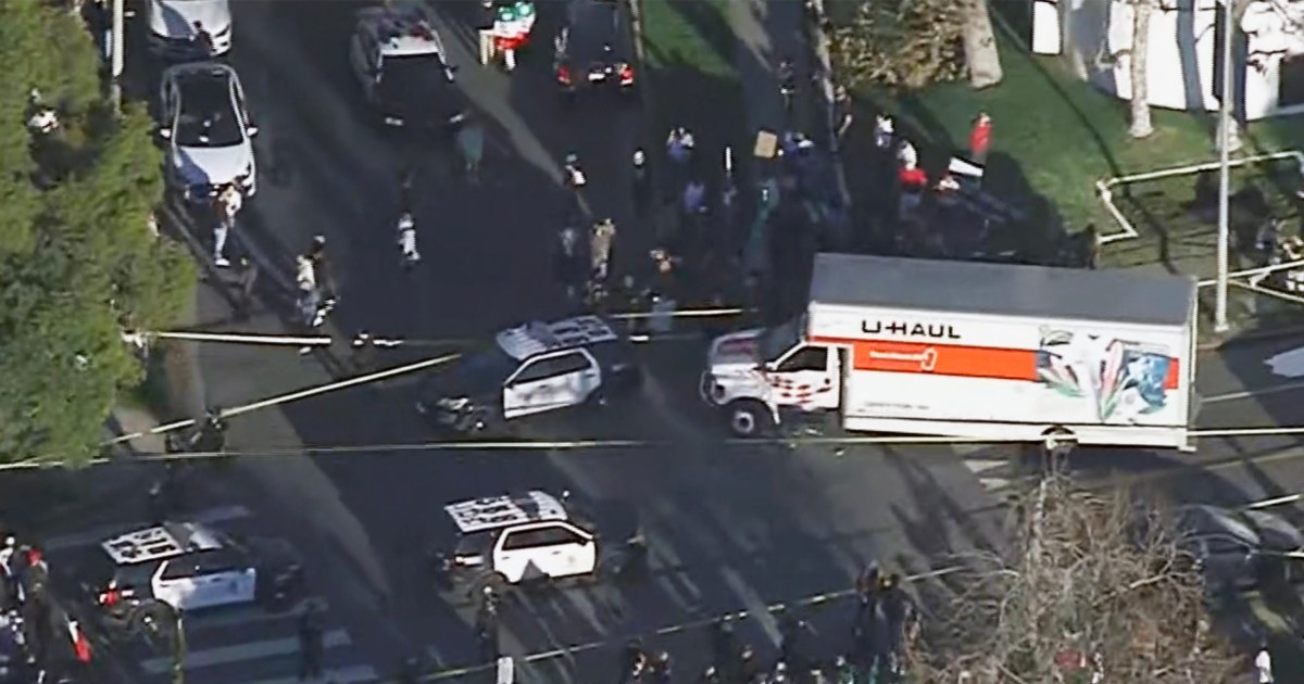 Protesters try to attack driver after truck speeds through anti-Iran demonstration in Los Angeles