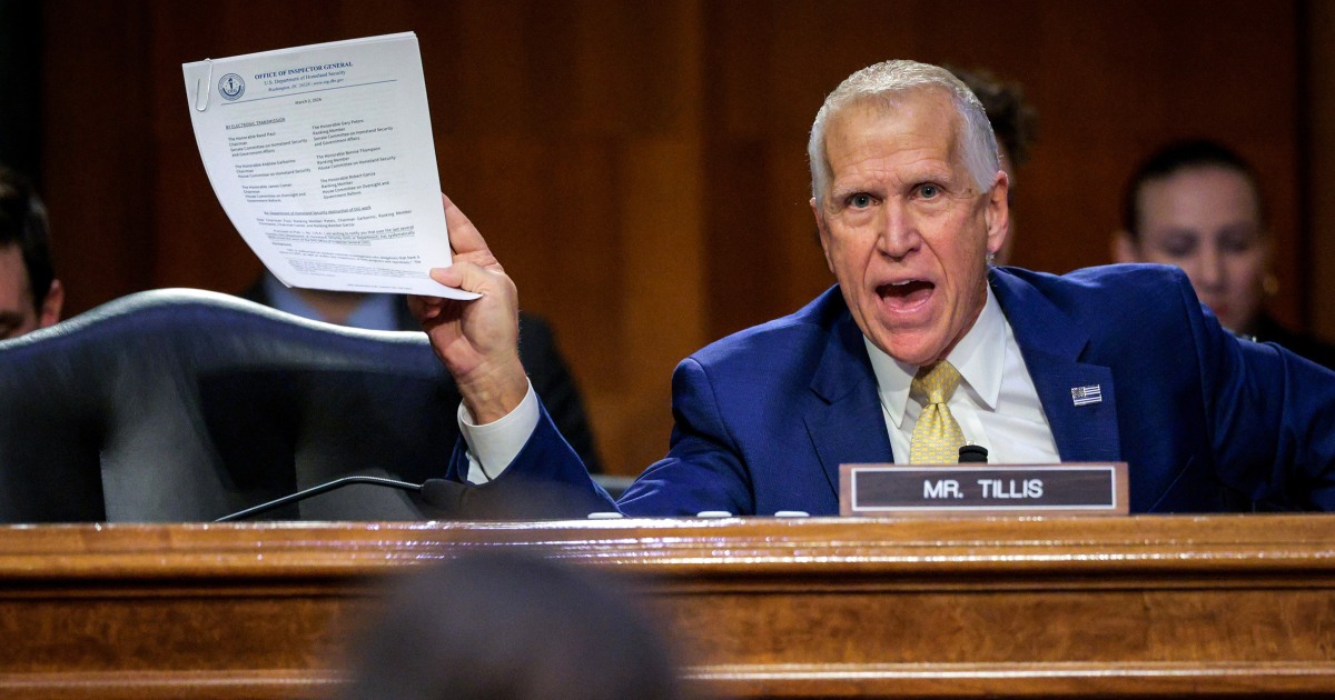 Sen. Thom Tillis, R-N.C., tore into the Homeland Security secretary during a hearing Tuesday, saying he will hold up Trump's nominees until he gets answers from her department....